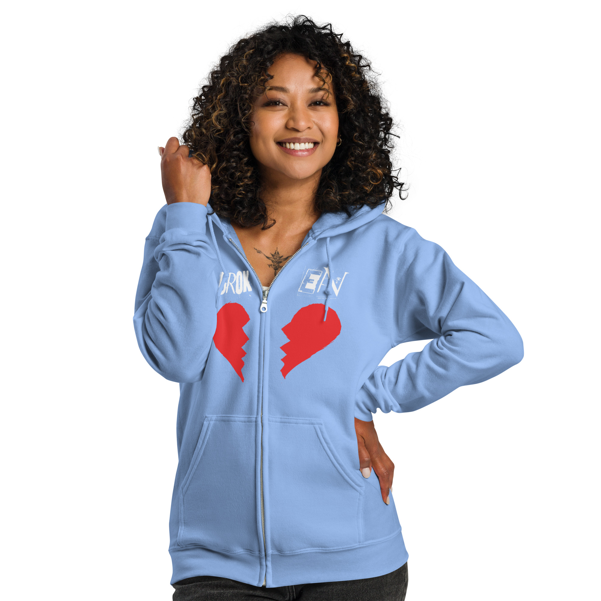 Designed with style and comfort in mind, this hoodie will quickly become your new favorite. It’s made from soft fleece inside and outside, with a sturdy metal zipper, convenient front pockets, and a hood with color-matched drawstrings.
